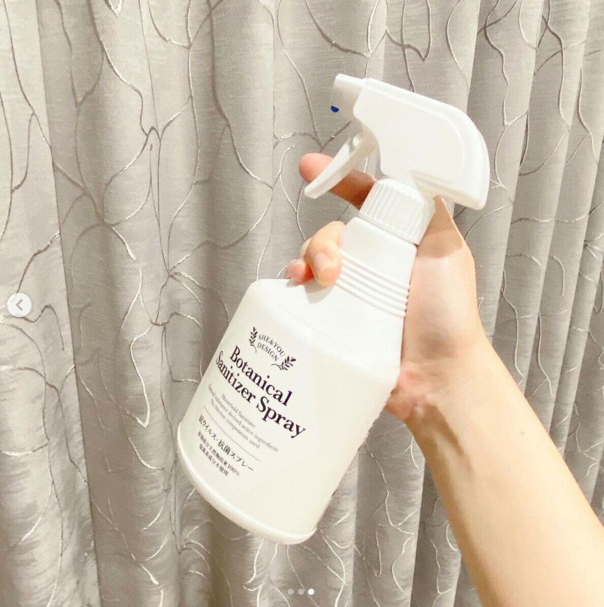 こちらは、まりんさんが使っている「ボタニカルサニタイザースプレー」という商品です。除菌スプレーだそうですが、消臭効果もあり、カーテンや洗いにくい布類、おもちゃなどに使うのもおすすめなのだとか。掃除の仕上げにシュッとして除菌しているそうですよ。
