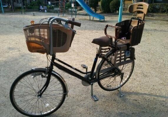 一般的な前後に乗せられる幼児2人同乗用自転車は、前と後の席では乗せられる子どもの年齢や体重の規定が異なるため、双子のように同じ体格で同じように成長する子ども2人を乗せるには向いていません。そこでまずは、市販の双子自転車を探すことからスタートしました。