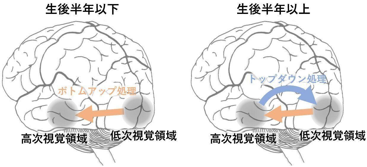 6カ月以下の赤ちゃんの脳には、トップダウン処理が備わっておらず一方通行