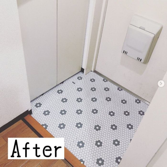 こちらはニトリで購入したヘキサゴン柄フロアシートを。chankohomeさんは玄関に敷いてみたそう。玄関全体の印象が変わり、明るくなりました!とお気に入りの様子。可愛らしくて大人っぽさもあるデザインで、大人気の柄のようですよ。