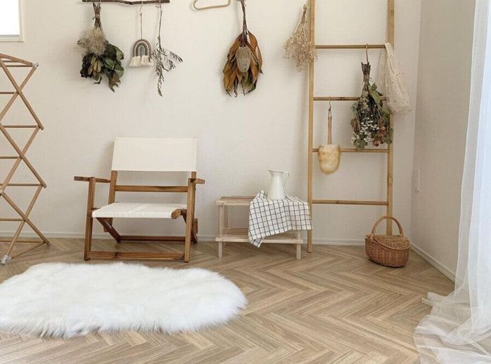 yukky_home7さんはヘリンボーン柄のフロアシートを。開きにした魚の骨に似る形状からニシン(herring)の骨(bone)という意味の柄なんだとか。こちらは娘さんのお部屋なんだそう。グッとオシャレな空間になって素敵ですね。