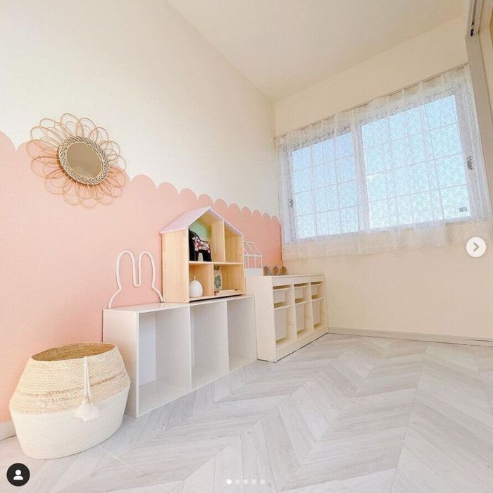 なぁさんはヘリンボーン柄のフロアシートを。こちらはお子さんのおもちゃ部屋だそう。元々はブラウン系のお部屋だったようで、グッと明るくて可愛らしい空間に。お子さんも喜びそうな雰囲気ですよね。とっても素敵です!