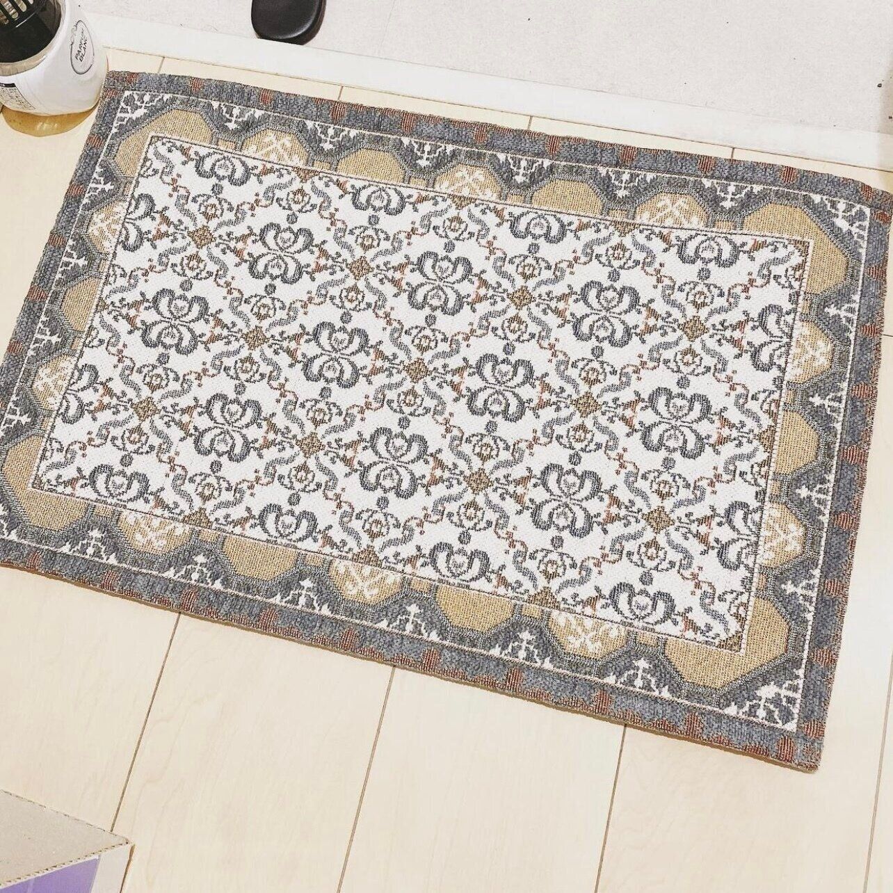 昨年から一人暮らしを始めたs_room1024さんは、3COINSでお買い物する機会が増えたそう。今回は玄関マット用にアンティークマットを購入。緻密なデザインなのでこれ1枚でお部屋の印象がガラッと変わりそうですね。こちらは550円商品だそうですよ。