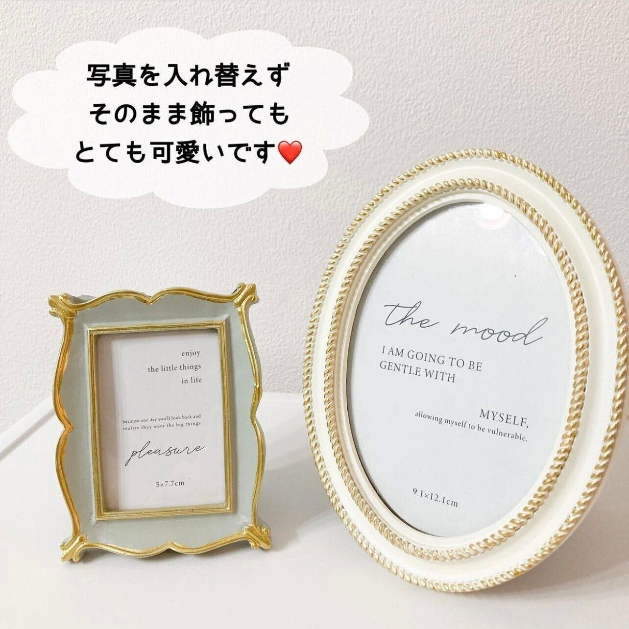 ユニ子さんはラウンドとレクタングル2種類のフォトフレームを購入したそうですよ。ニュアンスカラーにゴールドの色使いがオシャレですね。こちらはフォトフレームですが、レクタングルタイプと同じデザインのミラーもあったそうです。