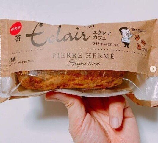 TKSさんが購入したのはピエール・エルメとのコラボスイーツ、「エクレア カフェ」。こちらはコラボシリーズ第5弾のようです。香ばしいクッキー生地を重ねたエクレアの皮に滑らかなコーヒーカスタードクリームとコーヒーホイップクリーム、コーヒーゼリーが入り、甘さ控えめで食べやすかったそうです。