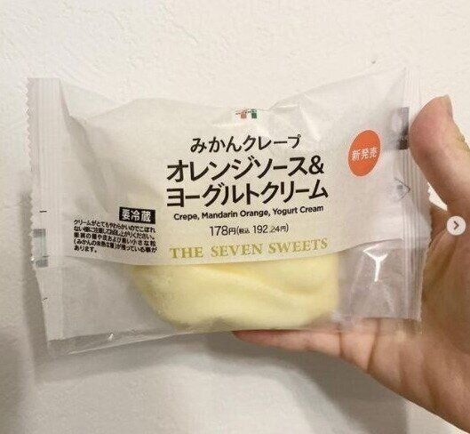 ムシャ子さん購入したのは、新発売の「みかんクレープ オレンジソース&ヨーグルトクリーム」。生地はモチモチで、中には甘さ控えめのシロップ漬けみかんが入っているのだとか。ヨーグルトクリームもさっぱりしていて、スッキリとした味わいで美味しかったそうです。