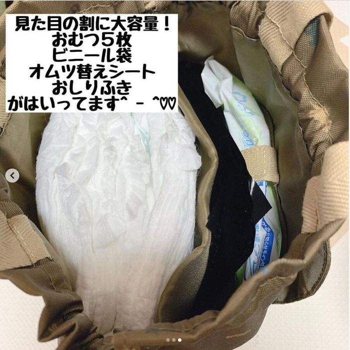 しまむらのおむつポーチは、中身がたくさん入るところも人気のようです。knhbnsさんは、おむつ5枚とビニール袋、おしり拭きとオムツ替えシートまで入れてみたそう。コンパクトな見た目と対象に、こんなに入るのは驚き!長時間のお出かけにも便利ですね。