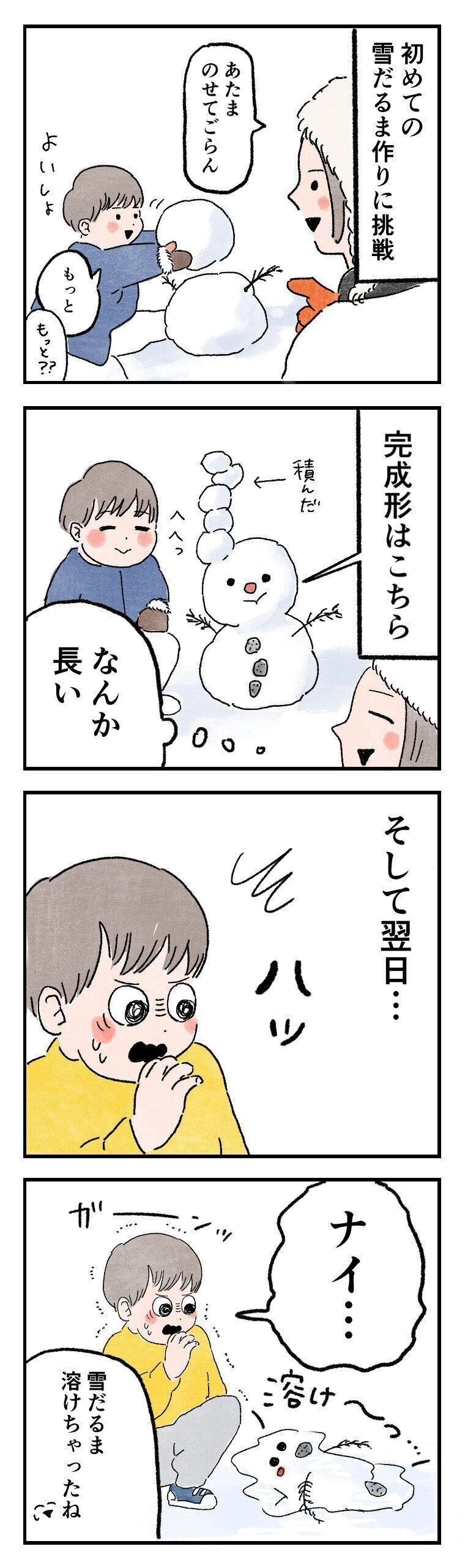 職人渾身の力作の雪だるまは、翌日には切ない姿に…。