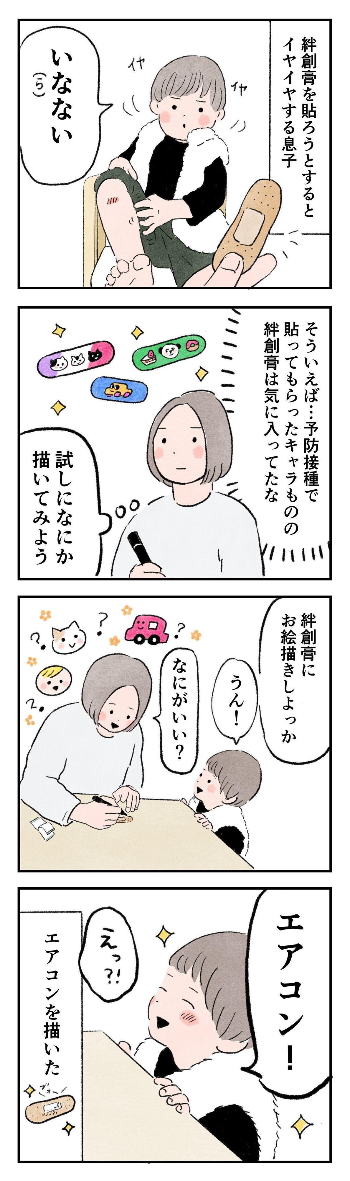 ある日、ころんで小さな擦り傷を作った息子。絆創膏を貼ろうとすると嫌がられてしまいました。