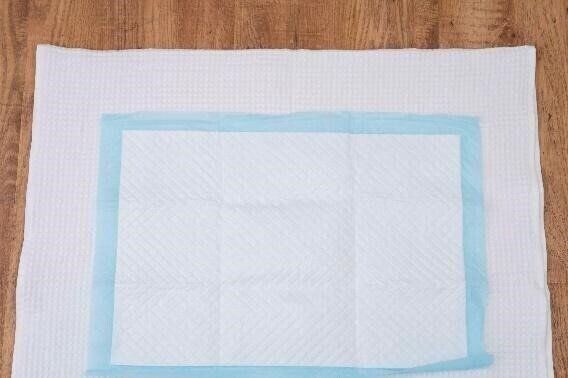 女の子は、ペットシーツの真ん中あたりにおしりがくるようにします。前後が均等になるくらいがいいでしょう。