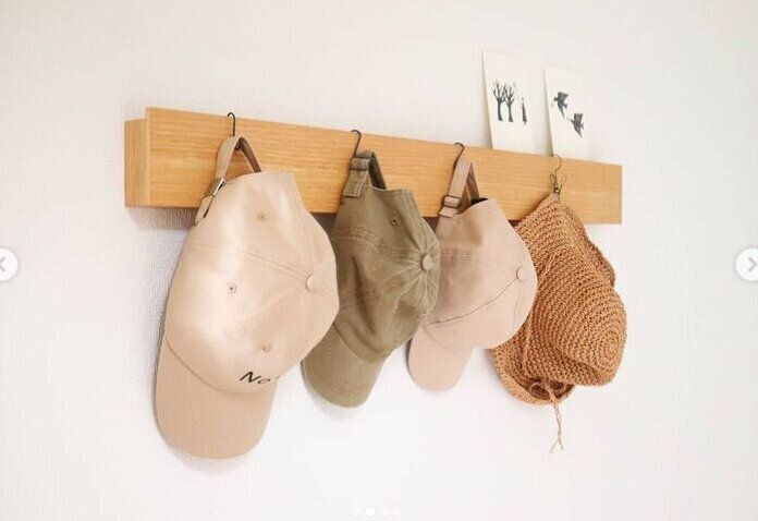 こちらは、aoiさんが設置した壁に付けられる家具です!S字フックで、帽子を引っ掛けられるようにしたそう。お出かけ前にサッと取れて便利なんだとか♪ 実用的でもあり、インテリアとしてもオシャレですね。