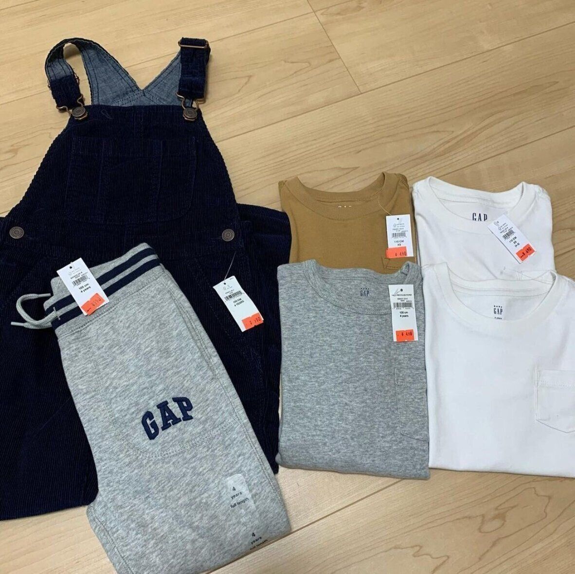 Sさんはこちらのアイテムをセレクト。サロペットとズボンは550円だったそうで、その他のトップスも400円以下だとか!幅広いシーズンで使えるシンプルな単色アイテムはぜひGAPベビーのセールで買いたいですね♪
