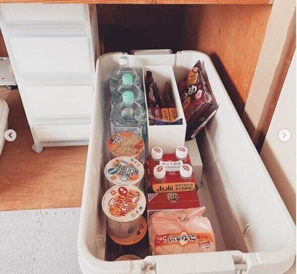 インスタグラムの投稿より、備蓄食料の収納アイデアをご紹介しました。ローリングストックを上手に取り入れれば、常に新しい食料が備蓄できるので便利そうですね。