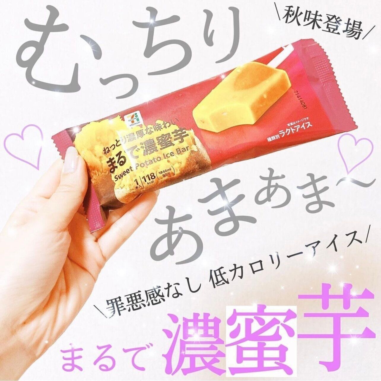 amiさんが思わず買いだめしてしまったというのは、セブンイレブンの「まるで濃蜜芋」。スイートポテトのような甘くてねっとりとした口当たりに、ダイス状のお芋が加わってお味も食感も楽しめるアイスバーなんだそうですよ。1本入り149円のようです。