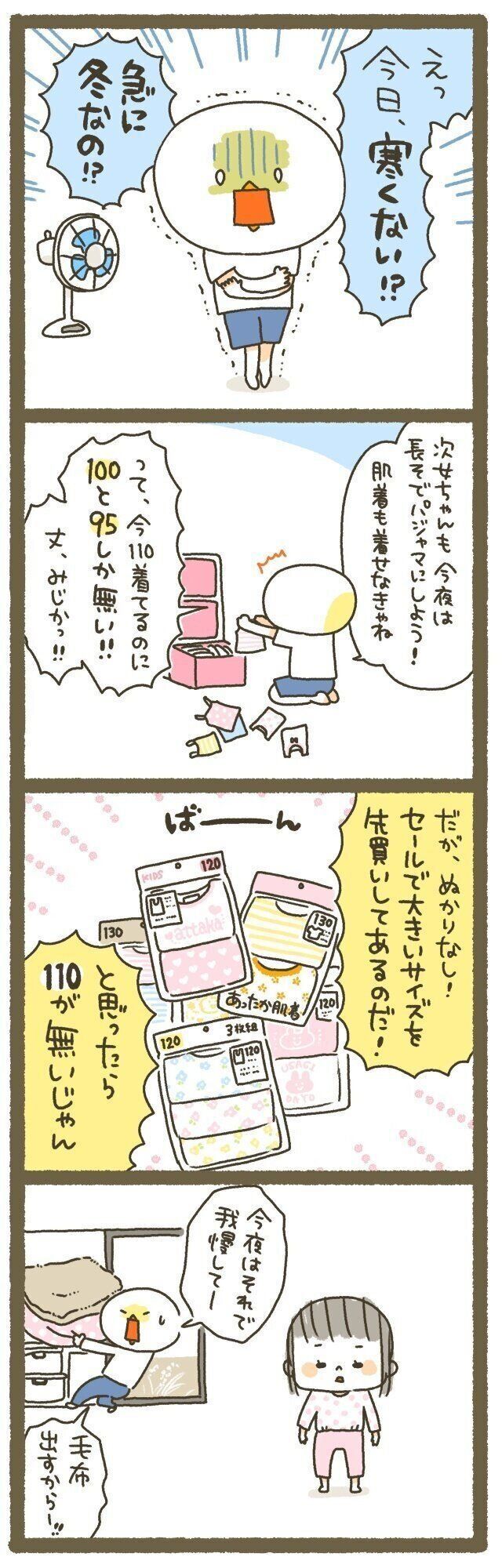 いやいや待て待て、長そでパジャマも、なんなら肌着すらも小さいじゃないか!