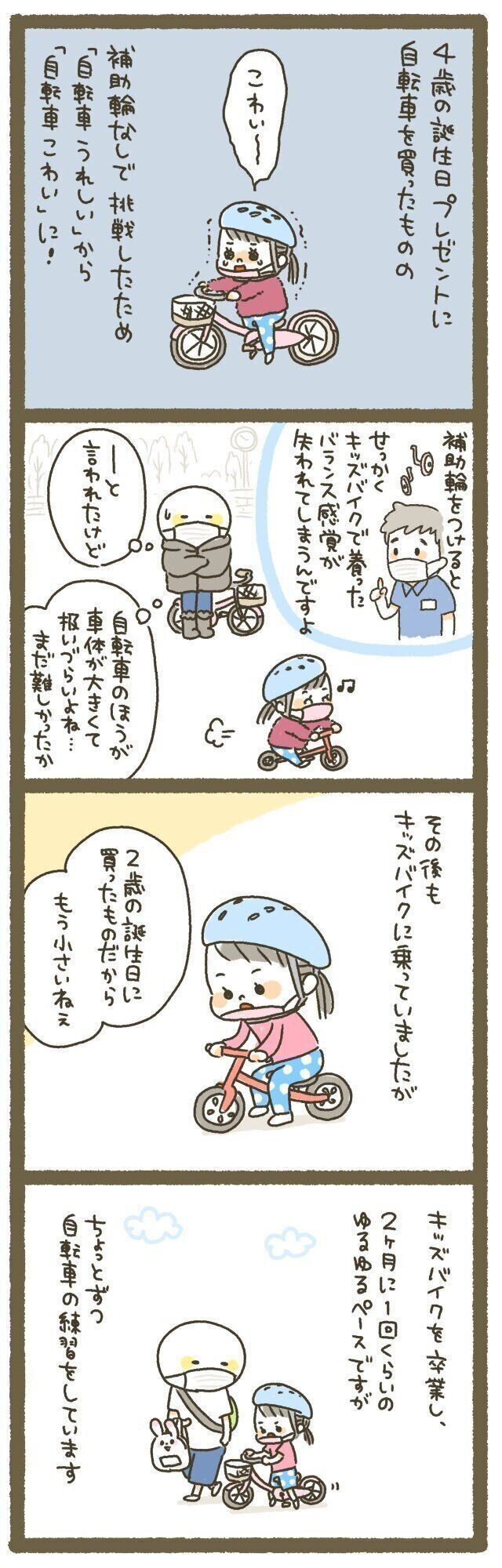 この感覚を忘れないうちにと、「自転車乗れたね!」と褒めまくり、あまり日を開けないようにせっせと自転車の練習へ行きました。