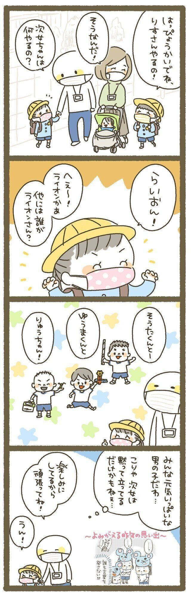 今年はどうかな?と思っていたら、元気な男の子たちと一緒にライオンさん役をやるんだそう。