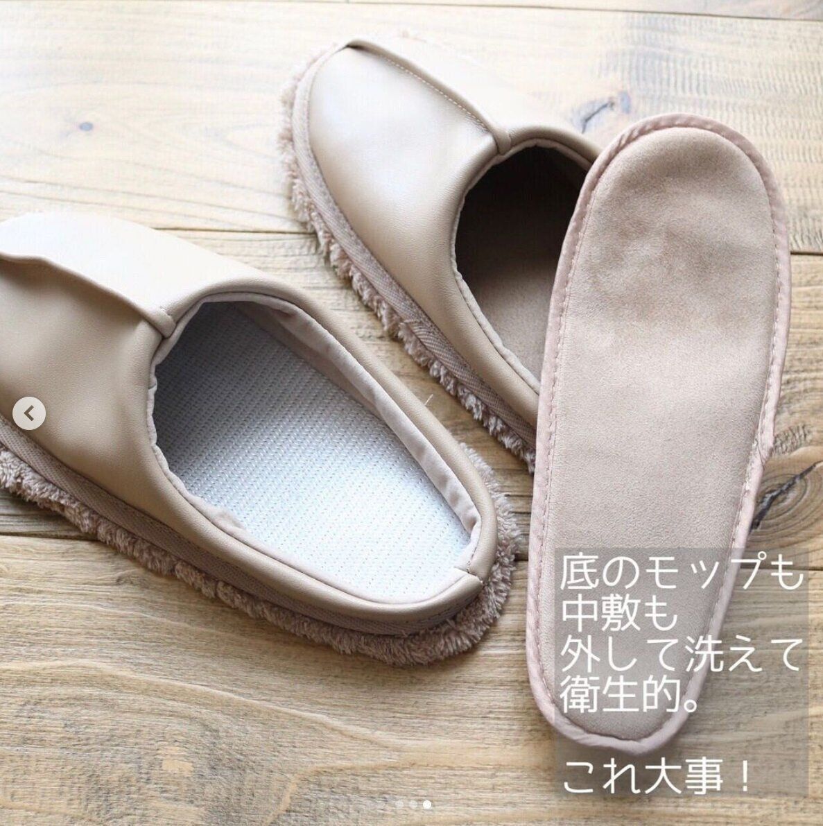 moiさんがキッチンで使っているのは底にモップが付いているお掃除スリッパ。キッチンで使うことで、料理しながら水滴を簡単に拭くことができているそうです。底や中敷きを交換できるとのことで、衛生的ですよね!