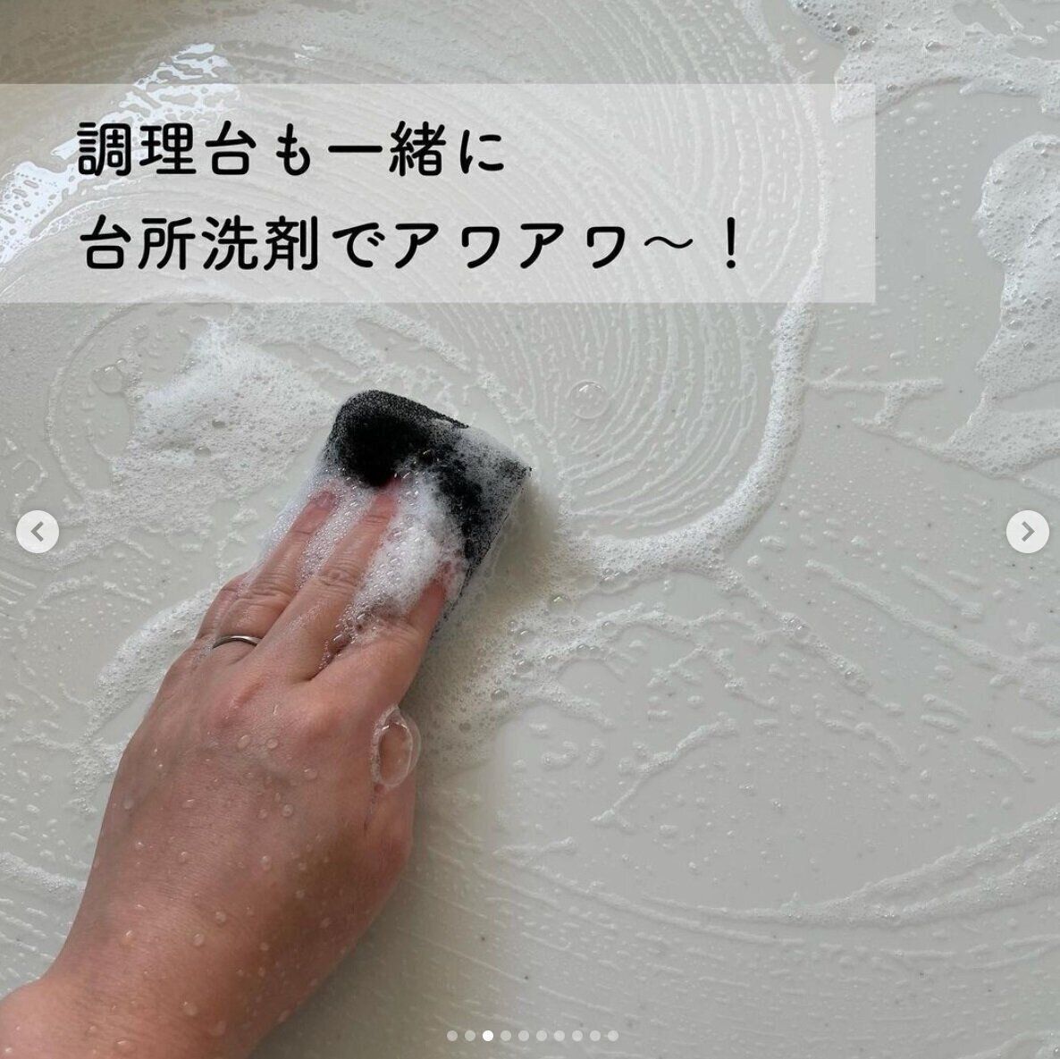 らっちさんは週末のこそうじ(小掃除)でキッチンの丸洗い!台所洗剤でシンクや調理台を洗っているそうです。いつも使っているアイテムでついでにこそうじ(小掃除)ができるのは魅力的ですよね!