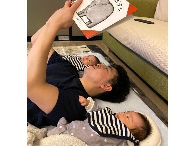 退院後は、夫婦での育児がスタート。2カ月ごろまでは、1人が寝たと思ったらもう1人が泣き、2人とも起きてしまうの繰り返しで、ほとんど眠れないまま朝を迎えたことも…。試行錯誤し、寝かしつけ後に大人もすぐに横になれるよう、リビングに全員で寝るようにしたりもしました。