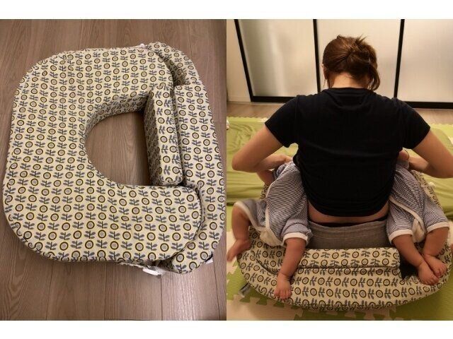 双子用の授乳クッションを使っています。同時に母乳があげられ、息子たちの体も安定して乗せられます。
