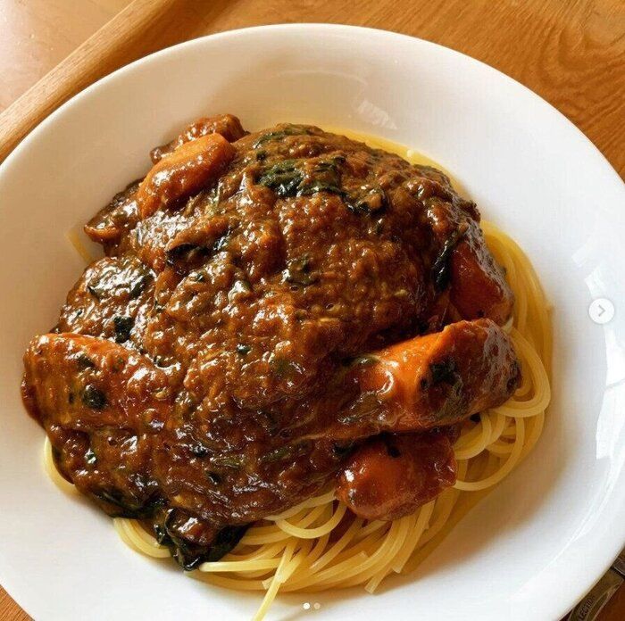 tenuki_ryoriさんはこちらのメニューを。適当な大きさにカットしたアンチョビのオイル漬けをオリーブオイルで軽く炒め、香りが出てきたらキャベツ、ウインナーなど具材を炒めるだけのシンプルレシピ!味が足りないときは塩コショウやにんにくを足してもOKとのこと。パクパクと食べちゃいそうですよね!