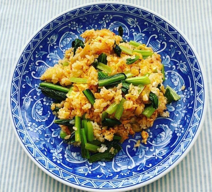 aki1996080608さんは小松菜とキムチのチャーハンを作ったそう。材料は、小松菜・キムチ・卵・冷凍ごはんの4つだけ。オリーブオイルで小松菜を炒める→解凍したごはんを投入→キムチと溶き卵を入れる→水分を飛ばしながら炒めて完成!味付けはキムチのみなんだそう。コレは食べてみたくなりますね。