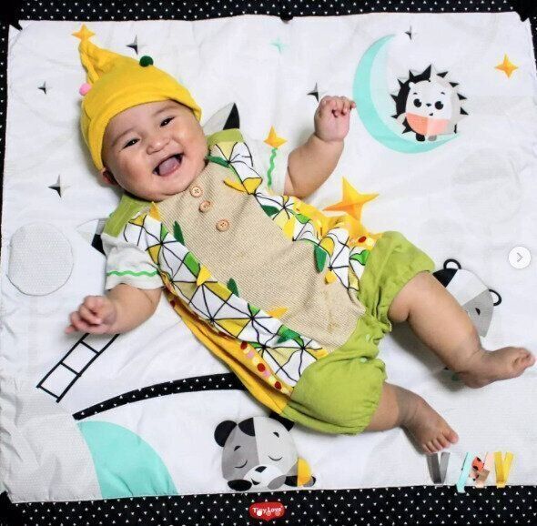 橙吾さんが購入したのは「ピカピカブ~!」のコスチューム風ロンパース。この衣装を着て、離乳食ケーキを用意してハーフバースデーの撮影をしたのだとか。ニコニコ笑顔が可愛いですね!こちらは2,970円 (税込)の商品のようです。