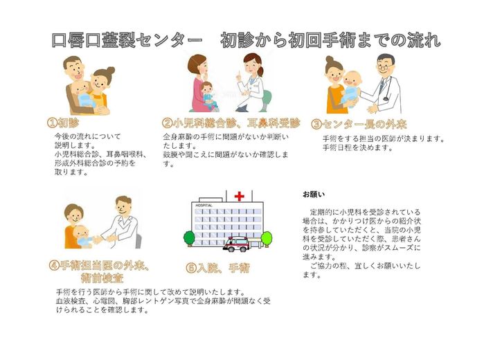 口唇口蓋裂センターの初診から手術までの主な流れ