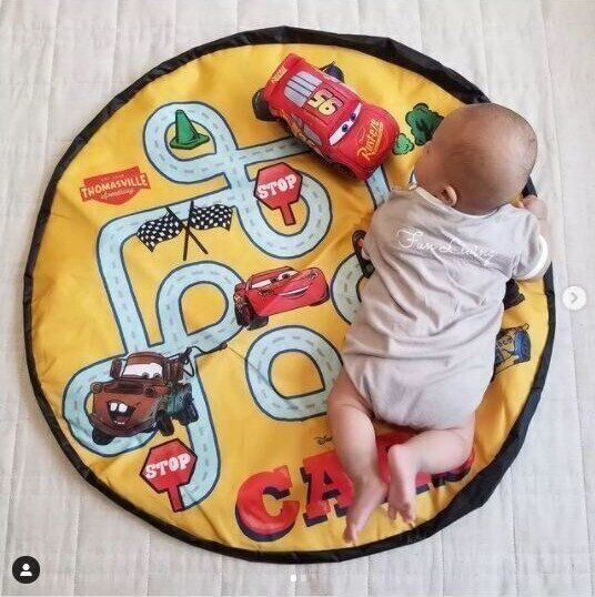 こちらは3COINSのキルティングマット。直径100cmの丸いマットは可愛いくまさんのお顔が散りばめられているみたい。don_jovanniさんはベビーベッドの足元に敷いたそうですよ。キルティングなので肌ざわりもふかふか♪ こちらは2,200円商品だそうです。