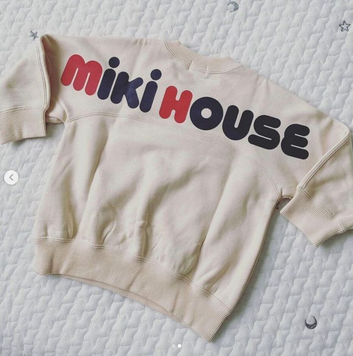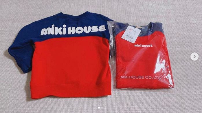 こちらは、かほままさんが購入したバックロゴトレーナー。ミキハウス定番の赤とネイビーのカラーがかわいいですね。きょうだいでおそろいコーデがしたくて、2サイズゲットしたそうですよ。