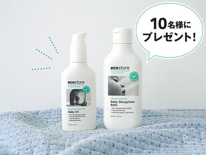 さらに今なら、アンケートに答えていただいた方の中から抽選で10 名様に、エコストアの『ベビースリーピータイム』『ベビーオイル』をセットでプレゼント! ぜひご参加ください。