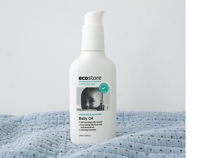 赤ちゃんのお世話で欠かせない、入浴後の保湿ケア。エコストアの『ベビーオイル』は、天然エッセンシャルオイルのラベンダーの香り。また、ニュージーランド産のブラックカラントオイル配合。強い紫外線を浴びたブラックカラントは栄養価が高く、赤ちゃんの繊細な素肌を健やかに保ちます*。さらに、ココナッツオイルやアーモンドオイルなど、5種類の植物オイル配合で、ママのマッサージなどにもおすすめです。