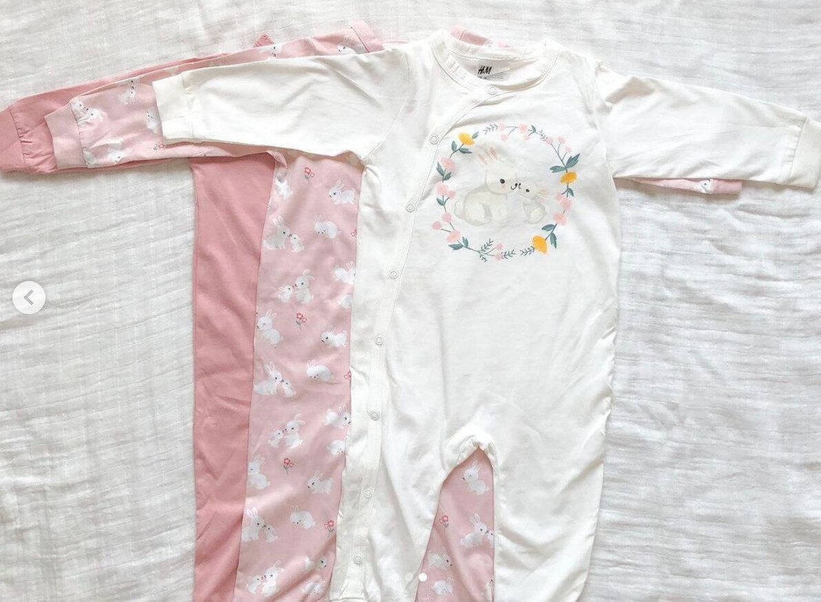_riiina0313_さんは、おうち用にこちらの長袖カバーオールをH&Mで購入。かわいいウサギ柄に惹かれたそうです。全身に散りばめられたウサギ柄も、胸に大きく描かれたウサギ柄も、どちらも優しい色合いで可愛らしいですね。