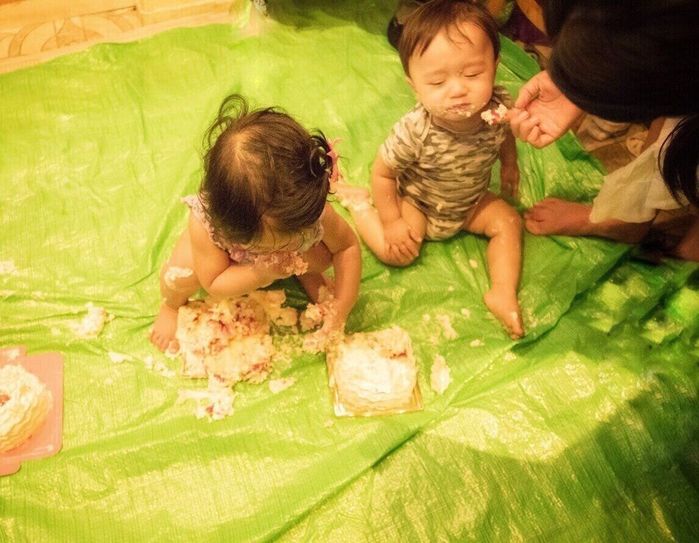 私も4年前の双子の息子と娘のお誕生日に、ケーキスマッシュをしようと思い、小さなホールケーキを2人分用意しました。“おいしい〜!”の顔が見たくて、楽しみにしていた誕生日当日。クリームでぐちゃぐちゃになることを想定し、汚れてもいい洋服に着替えさせて準備はバッチリ。家族と友人もカメラを構えてスタンバイ。そして、ハッピーバースデーを歌い終え、いよいよケーキを双子の前に出すと・・・。