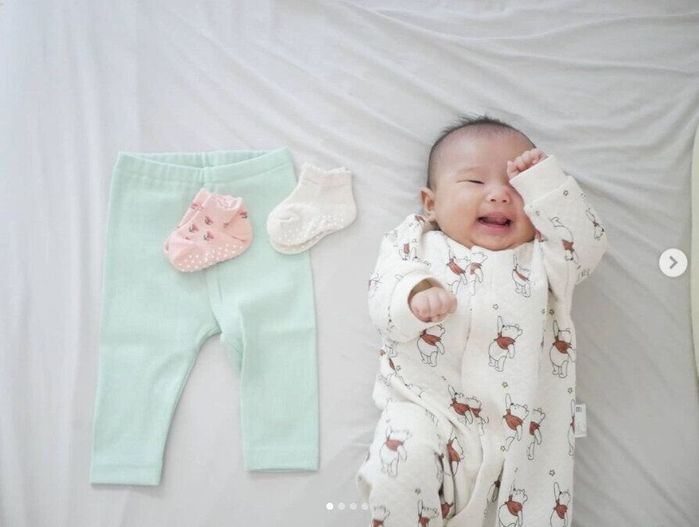 mikakoさんはこちらのアイテムをゲット。「可愛さ、コスパ、使いやすさ、ユニクロ最強」ととってもお気に入りの様子。プーさんのキルトカバーオールはふんわりとして暖かそうですよね。娘さんの表情がとってもキュートです!