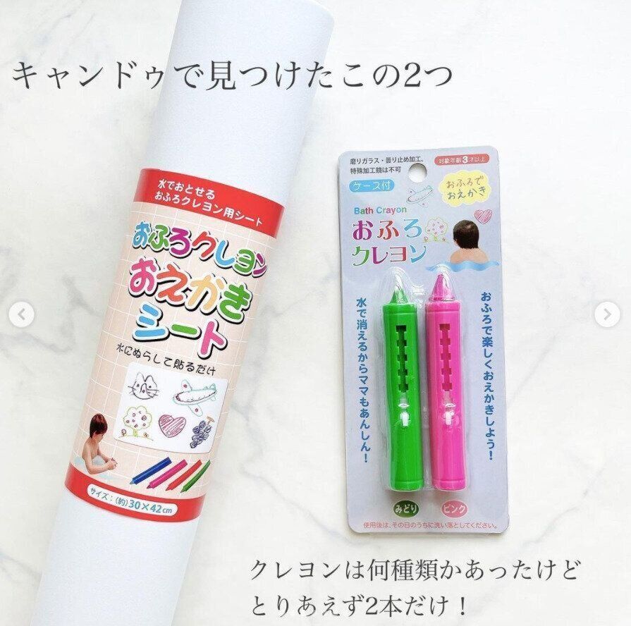 のんちゃんさんはお風呂用おえかきシートとクレヨンを購入。クレヨンは柔らかめなので子供でも描きやすいんだそう。おしりふきでサッと拭いても、お風呂でシャワーを当ててもカンタンに消えるんだとか。コレはお風呂の時間が楽しくなりそうですね。