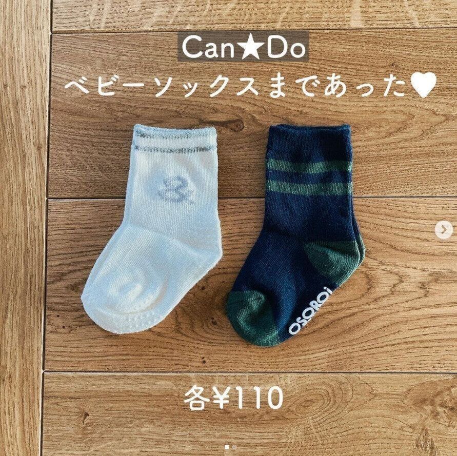パス子さんはベビーソックス(各110円)を購入。すべり止め付きでデザインも可愛かったので即ゲット!サイズは10~14センチで9ヶ月の息子さんにぴったりだったんだそう。見た目もシンプルで、どんなお洋服にも合いそうですよね。