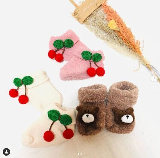 p_chan2525ssmさんが購入したのはさくらんぼやくまさんの赤ちゃん用靴下。こちらはそれぞれ330円(税込)の商品のようです。立体的なくまさんがかわいい!他にもいろいろ種類があるようです。
