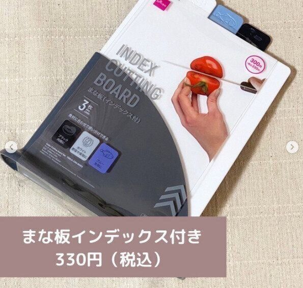 1枚のまな板でお魚やお野菜、お肉などを切るとき、毎回まな板を洗うのはめんどうですよね。ダイソーの「まな板(インデックス付)」はインデックスがついていて、それぞれ使い分けできるのだとか。毎回洗う手間が省けて便利そう!
