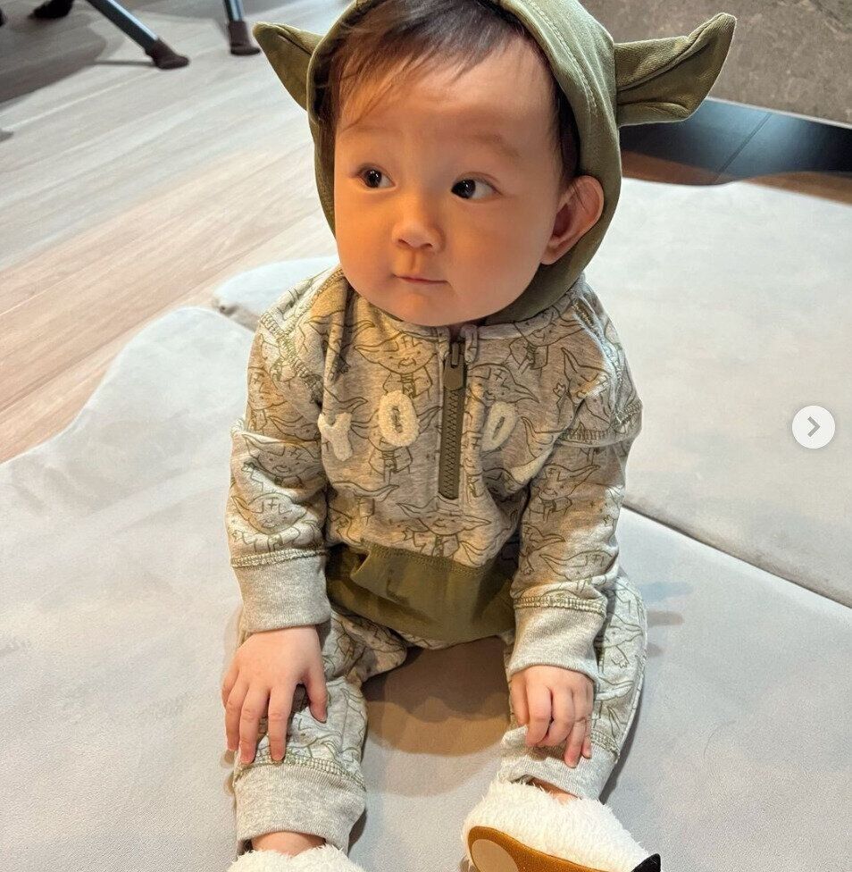 miitan317さんはスターウォーズコラボのセットアップをセレクト。ご主人の趣味で買ったそうで、ヨーダがモチーフになった総柄が他にはあまりないデザインですよね。フードに付いている耳も特徴的で可愛いですね。