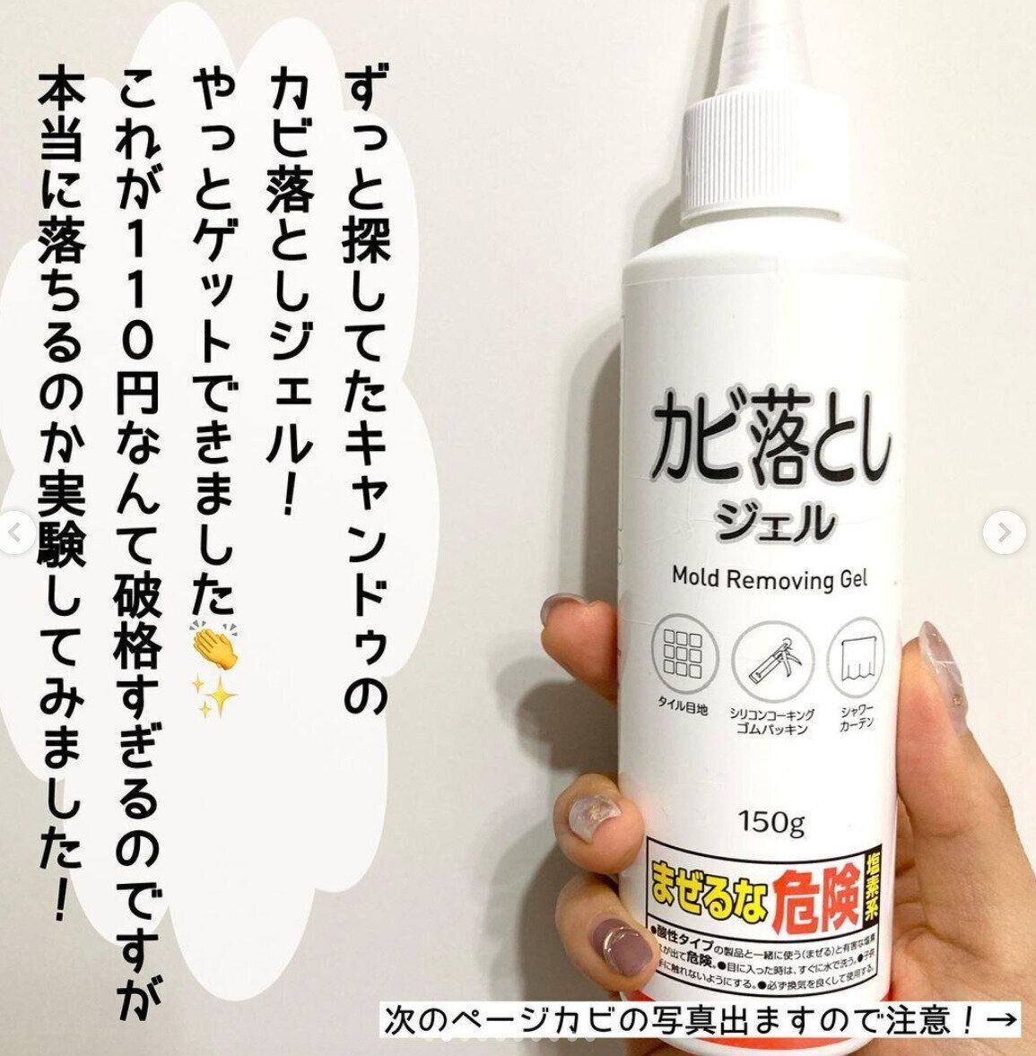 ユニ子*100均大好き*ダイソー・セリア・キャントドゥさんがキャンドゥで購入された、こちらのカビ落としジェル。こちらのお宅では、放置していたお風呂のカビ汚れも落とすことができたのだそう。ジェル状になっているので垂れることがなく、壁にも密着してくれるのが嬉しいですね。