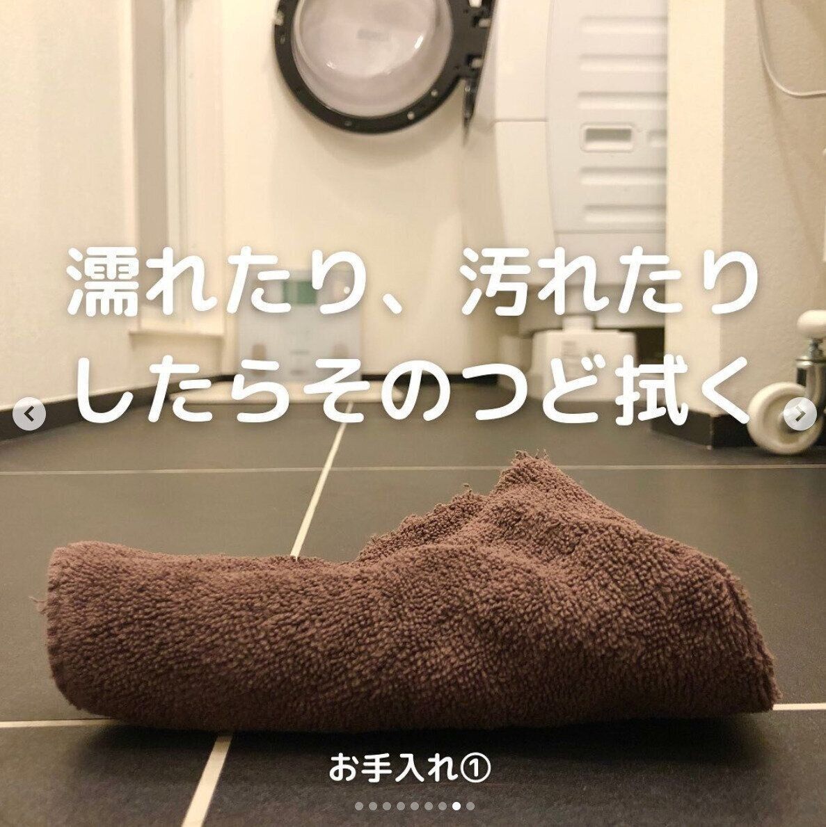 なつこさんのお宅ではマットやラグを敷かないようにすることで掃除をラクにしているそうです。汚れたらその都度拭いたりルンバやブラーバに任せたりすることでマットの汚れが気にならず、衛生的なんだとか。