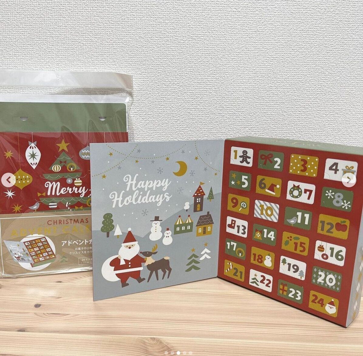 ryukoto.mamaさんがセリアで発見した、クリスマスのアドベントカレンダー。箱の中には小さいサイズのお菓子などを入れることができるそうなので、子どもも楽しみながらクリスマスまで過ごすことができるのではないでしょうか?