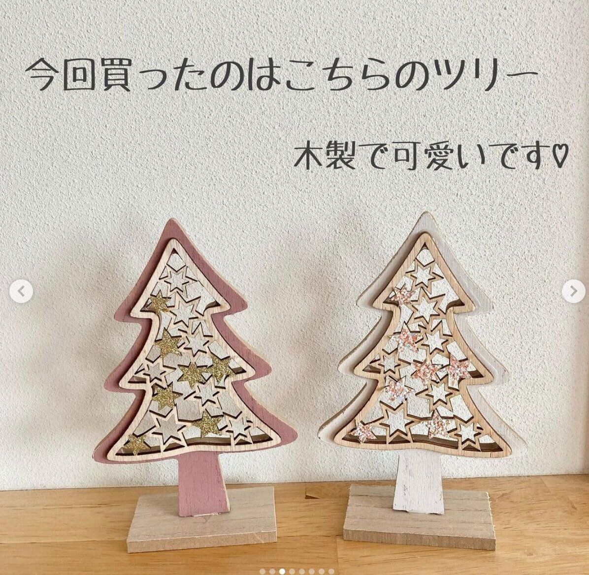 silk_haru3mamaさんがセリアでゲットしたという、2色の木製ツリー。ミニサイズなので、場所を選ばずどこにでも飾ることができそうですね。お家のちょっとしたところに飾るだけで、一気にクリスマスムードにチェンジできるのではないでしょうか?
