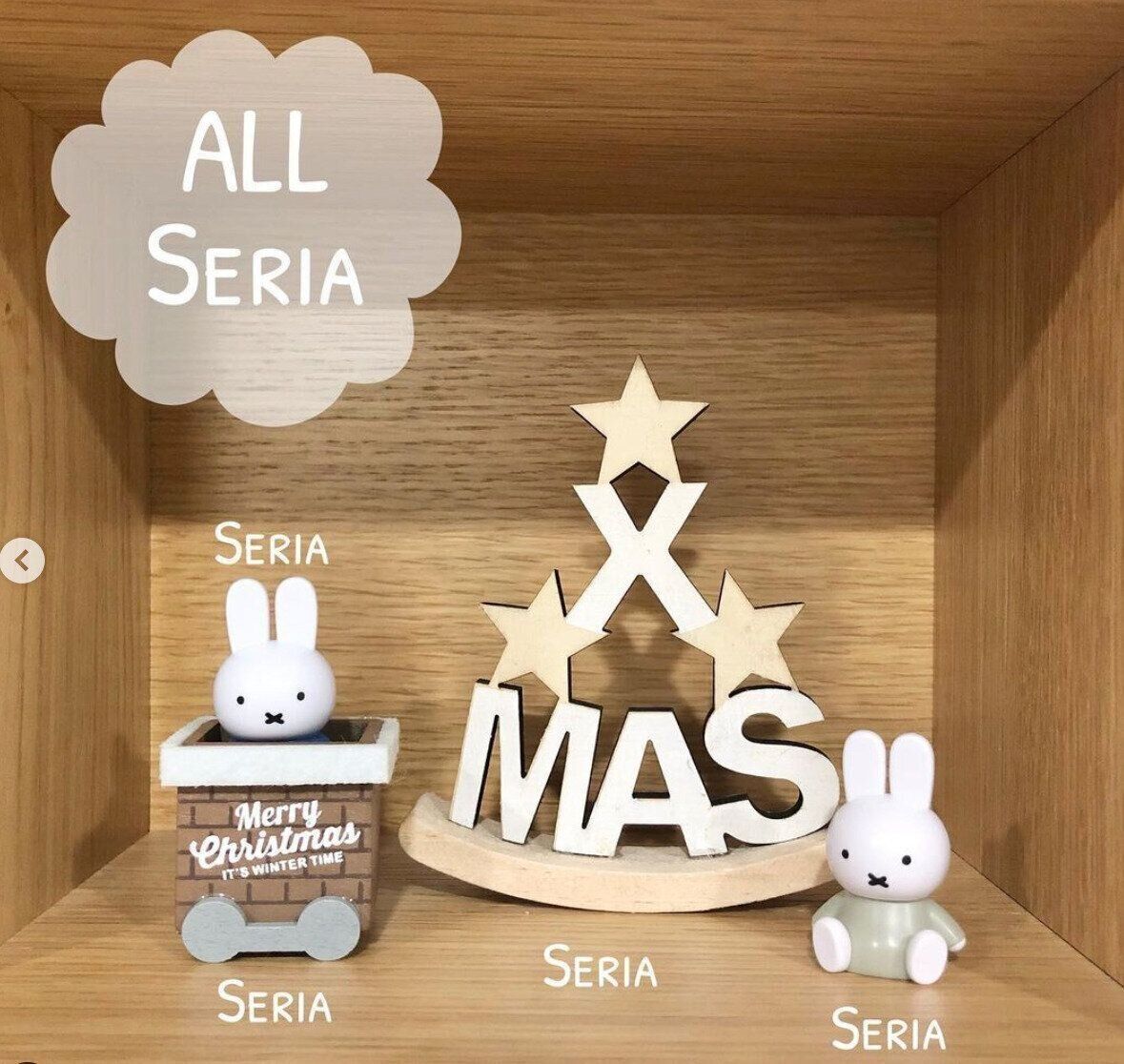 セリアでyoshi_home20203さんが発見した、クリスマス用のオブジェ。大きすぎないので飾る場所を選ばず、ナチュラルな雰囲気のお部屋にも合わせやすそうですね。一緒に写っているミッフィーのオブジェもセリアで購入されたそうですよ。
