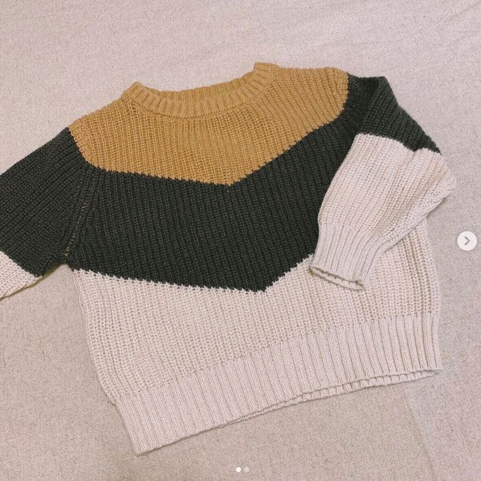 mashumalo_3608さんは、絶対欲しかったというこちらの3色柄のニットを購入したそうです。シンプルだけど配色が絶妙におしゃれなアイテムですね。デニムパンツやコーデュロイとの相性も良さそう!