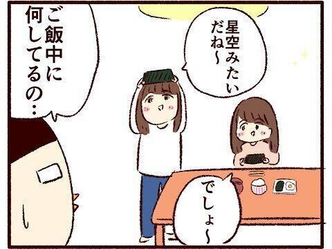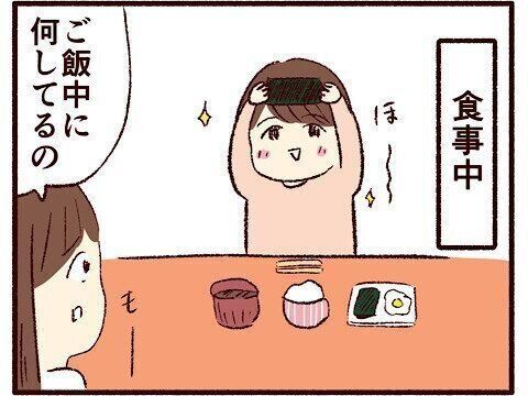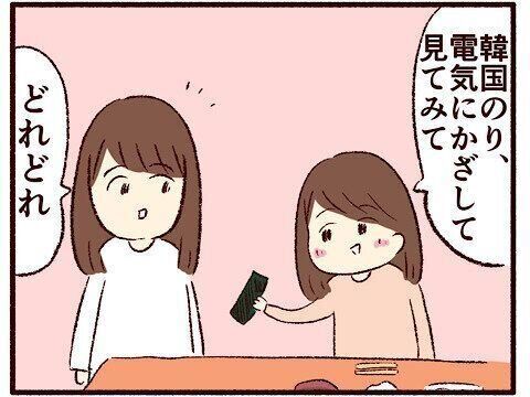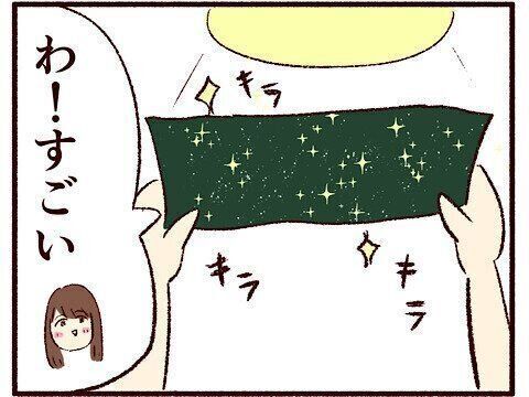 韓国のりを上にかざして目を輝かせる娘。注意しようとすると…