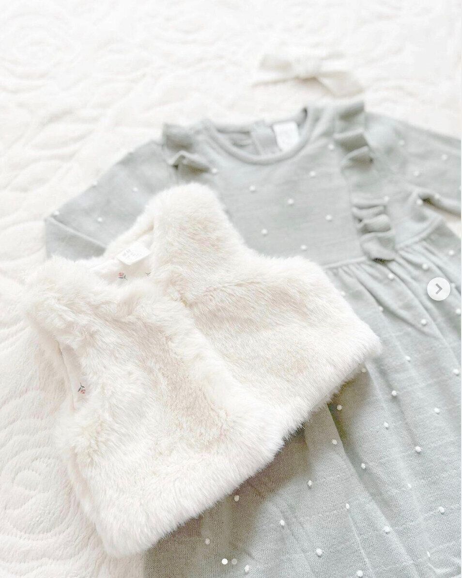 「ベビーにはかわいい白のアイテムを着せたくなる!」というxnaa_325さん。H&Mではこんなにかわいいホワイトのあったかアイテムをゲットしたそうです。フード付きのアウターはモコモコ素材でとってもあたたかそうですね。