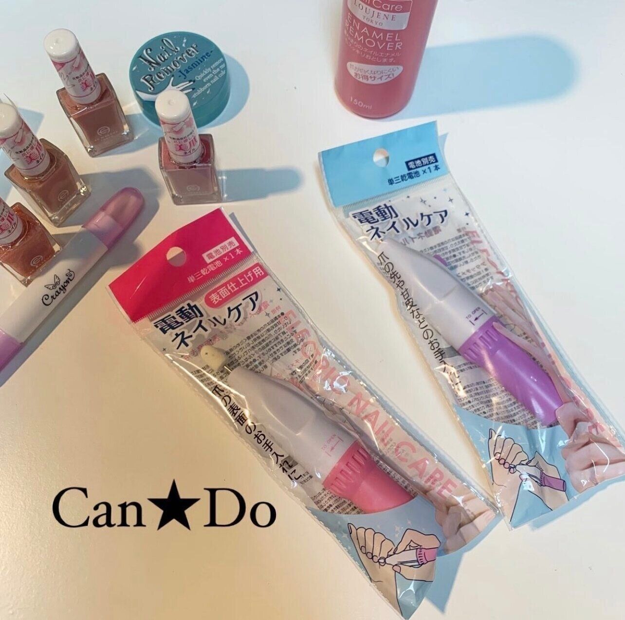 Fukaさんがキャンドゥで購入したのは、電池式の電動ネイルケアです。爪の表面や甘皮のお手入れをこのアイテムで簡単にできちゃうみたい。指先のケアはなにかと時間が掛かるので、こういったギアを積極的に取り入れていきたいですね。